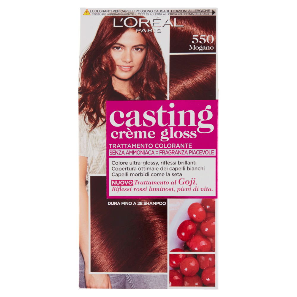 casting crème gloss è una colorazione senza ammoniaca con un complesso nutritivo brevettato che rispetta la fibra capillare e dona ai capelli riflessi incredibilmente visibili e brillanti. è stato arricchito con la pappa reale dal prodigioso potere nutritivo. la pappa reale è consociuta per le suevirtù nutritive e rigeneranti rimpolpa i capelli e dona una brillantezza glossy lunga durata. casting crème gloss è una colorazione senza ammonica che non rilascia nessun odore sgradevole. al contrario: il suo profumo delicatamente fruttato è divino! arricchito di un complesso nutritivo brevettato casting crème gloss rispetta la fibra capillare e dona ai capelli una morbidezza eccezionale un tocco voluttuoso e una brillantezza gloss. dopo la colorazione il trattamento nutri-shine all aloe vera e al tè verde rinnova la brillantezza e la vivacità del colore per un risultato luminoso e ultr