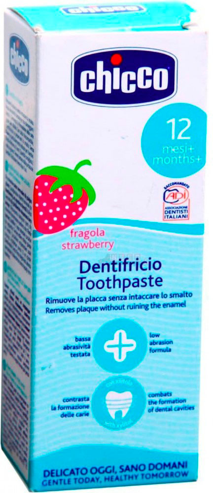 il dentifricio alla fragola chicco aiuta a prevenire la carie grazie allo xilitolo. la formulazione a bassa abrasività aiuta a rimuovere efficacemente la placca senza intaccare lo smalto e rovinare i dentini.l assenza di fluoro lo rende particolarmente indicato ai bambini di età inferiore ai 3 anni.contiene calcio bio – disponibile per rinforzare i dentini.formula senza conservanti.
