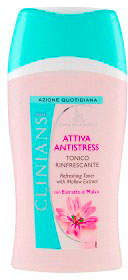Clinians Attiva Antistress Tonico Rinfrescante completa la pulizia del viso eliminando impurità e tracce di trucco residue. La sua formula dona una piacevole sensazione rinfrescante e tonificante. Senza Alcool. Contiene Estratto di Malva dalle proprietà emollienti e lenitive.