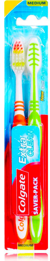 colgate spazzolino da denti extra clean efficacia e pulizia. ti garantisce elevata maneggevolezza e controllo grazie al manico ergonomico. la parte colorata della testina posta in alto è stata pensata per agevolare la rimozione della placca dai punti più difficili da raggiungere in fondo al cavo orale. le setole ondulate rimuovono delicatamente la placca più ostinata seguendo la naturale forma della dentatura