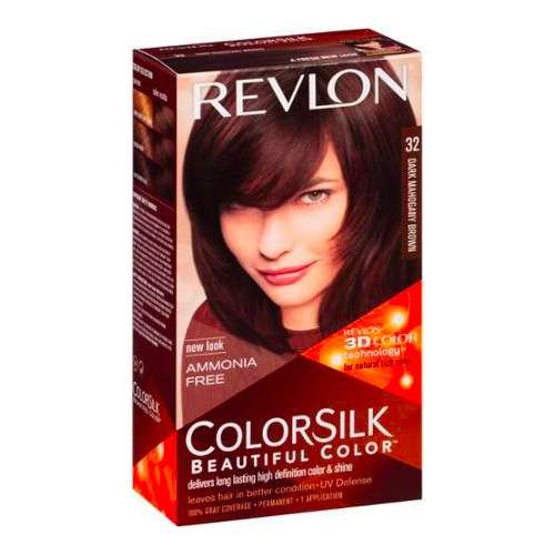 ColorSilk – Tinta per Capelli 32 Dark Mahogany Brown Colore Luminoso e a lunga tenuta che lascia i tuoi capelli straordinariamente belli. Revlon ColorSilk con protezione UV dona ai tuoi capelli un aspetto naturale e un colore omogeneo dalla radice fino alla punta. La formula delicata e priva di ammoniaca e il balsamo post-colorazione con proteine della seta penetrano e nutrono il capello rendendolo ancora più luminoso setoso e sano. 100% copertura dei capelli grigi.