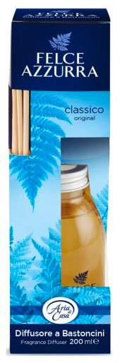 Aria di Casapuro benessereDa oltre 130 anni Paglieri si prende cura della tua pelle…da oggi profuma e decora anche la tua casa. Felce Azzurra Aria di Casa è una linea completa di profumatori nata per impreziosire la tua casa coneleganza e design grazie alle confezioni raffinate e alle profumazioni eleganti ed emozionali. Felce Azzurra Aria di Casa ti regala una sensazione di confortevole benessere grazie all inconfondibile profumo Felce Azzurra.La linea comprende anche:Spray Profumante Deo Ambiente Gel Diffusore Elettrico.Il diffusore a bastoncini è disponibile in diverse fragranze estremamente raffinate ed evocative:Talco e Lavanda: amabile profumo di relax per un momento esclusivo di pausa rilassanteVanigli
