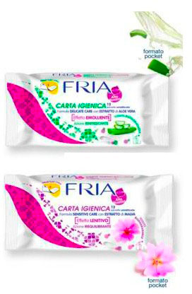 Fria carta igienica umidificata sensitive care Effetto lenitivo – Azione riequilibrante – Formula Sensitive Care – Ideali anche fuori casa PIACEVOLE MORBIDEZZA IN TESSUTO GETTABILE Delicatamente profumata e piacevolmente morbida realizzata in tessuto ultrasoffice, la nuovissima Fria Carta Igienica Umidificata Sensitive Care è indicate per una cute particolarmente delicate in caso di irritazioni e mucose sensibili, svolgendo un gradevole effetto lenitivo. IDEALI PER UNA CUTE DELICATA L’innovativa formulazione con estratto di malva assicura una complete azione igienica nel rispetto del ph fisiologico della pelle. Grazie alla soluzione isotonica, l’equilibrio della cute irritate viene mantenuto garantendo una piacevole e duratura sensazione di freschezza. Per adulti e bambini.