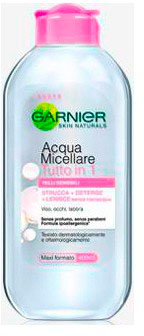 Acqua MicellareTutto in 1Detergente Tutto in 1Ideale per per pelli sensibili Multi azione:STRUCCA DETERGE e LENISCE Tutto in 1Non c? bisogno di risciacquare! Multi zona:Formulata per detergere perfettamente viso occhi e labbra. Ultra gentile:Delicata sulle pelli sensibili ? ipoallergenica* e testata dermatologicamente e oftalmicamente.