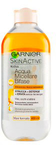 Fa per me? S? se cerchi una soluzione efficace per detergere la pelle eliminare tutti i residui di trucco anche waterproof e a lunga tenuta ed eliminare le impurit? con delicatezza. Adatta ai diversi tipi di pelle anche quelle sensibili. In cosa ? diversa? L Acqua Micellare Bifase strucca con grande efficacia anche il trucco waterproof deterge e idrata in un unico gesto viso occhi labbra senza bisogno di risciacquare. Garnier crea la sua prima formula bifase arricchita in micelle particelle detergenti attive che agiscono come magneti per catturare il trucco le impurit? e il sebo ineccesso. Insieme le 2 fasi si attivano per eliminare facilmente tutti i tipi di trucco e impurit?. Risultato: Una pelle struccata perfettamente pulita e idratata senza alcun residuo oleoso.