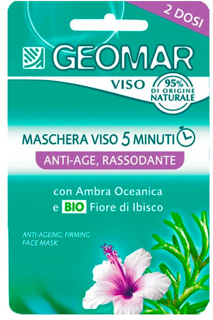 la maschera viso anti-age geomar è un trattamento specifico rassodante antietà che aiuta la pelle a ritrovare il giusto livello di elasticità in soli 5 minuti minimizzando l insorgere dei radicali liberi*.contiene ambra oceanica alga marina che svolge un azione rassodante ed antirughe e bio fioredi ibisco dalle proprietà tonificanti ed anti invecchiamento. la sua texture setosa è molto piacevole da applicare ed è ideale per tutti i tipi di pelle. non contiene parabeni siliconi coloranti oli minerali ed il profumo è senza allergeni.stendere uno strato abbondante ed uniforme sul viso e sul collo puliti ed asciutti evitando il contorno occhi e labbra. lasciare in posa per circa 5 minuti quindi rimuovere delicatamente con un batuffolo di cotone i residui di prodotto che non sono stati assorbiti dalla pelle. per un programma completo utilizzare l intera linea geomar viso.continuare