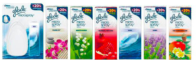 con un solo tocco glade microspray fornisce la giusta dose di fragranza e rimane nell aria a lungo.