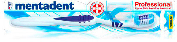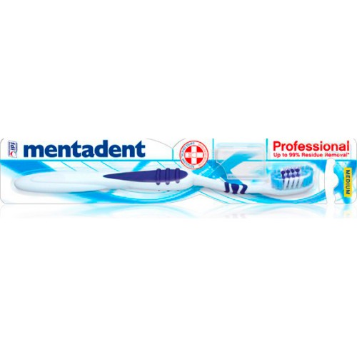 dall unione della ricerca mentadent con la competenza di esperti dentisti è nato mentadent professional che grazie ad una speciale combinazione di elementi offre una pulizia molto efficace.setole incrociate e a lunghezza differenziata rimuovono efficacemente i residui di cibo e la placca batterica per un azione di pulizia profonda. la sua testina piccola permette di raggiungere ogni parte della bocca in modo efficace così da estendere l azione di pulizia profonda a tutti i denti. il manico a tripla angolazione consente maggiore precisione nello spazzolamento ed un accesso più facile alla bocca soprattutto nelle parti più difficili da raggiungere.