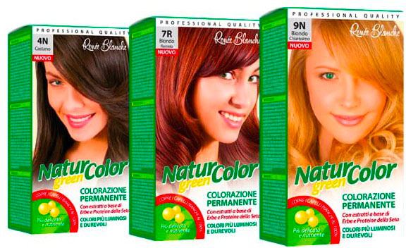 ren?e blanche natur green color. colorazione permanente. con estratti a base di erbe e proteine della seta. colori pi? luminosi e durevoli. copre capelli bianchi al 100%. incluso il pettine applicatore