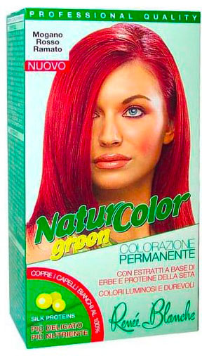 ren?e blanche natur green color. colorazione permanente. con estratti a base di erbe e proteine della seta. colori pi? luminosi e durevoli. copre capelli bianchi al 100%. incluso il pettine applicatore