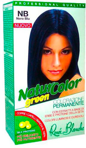 ren?e blanche natur green color. colorazione permanente. con estratti a base di erbe e proteine della seta. colori pi? luminosi e durevoli. copre capelli bianchi al 100%. incluso il pettine applicatore