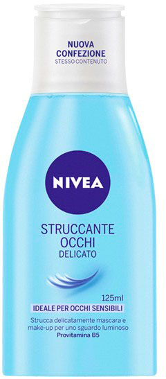 nivea visage struccante occhi delicato ? specifico per rimuovere efficacemente il trucco dalla delicata zona del contorno occhi senza lasciare residui oleosi. idrata piacevolmente il contorno occhi grazie alla sua formula extra delicata con provitamina b5. la zona del contorno occhi perfettamentedetersa e idratata ? pi? luminosa.